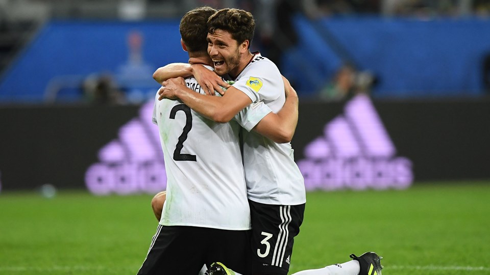 Jonas Hector celebra el triunfo frente a Chile. Foto FIFAMoscú, Rusia. (AGE) - Lo de Alemania es celebrar y celebrar. Hace poco mas de 48 horas ganó el Europeo Sub21 al vencer a España por 1-0. Hoy con el mismo marcador, se impuso en la Confederaciones a Chile.