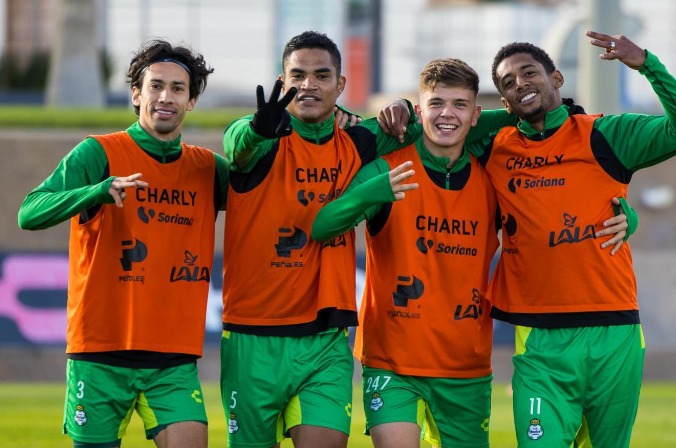 Choco Lozano con sus compañeros en el entreno de cara al arranque del Torneo. Foto: Club Santos