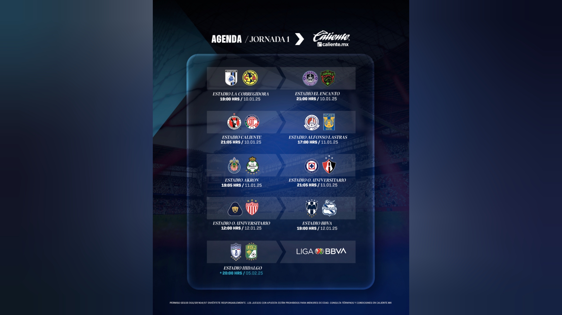 Distrito Federal, México.(HSI)-La Liga MX en su torneo Clausura 2025 arranca con la jornada uno, este viernes 10 de enero por la noche, en una noche emocionante.
