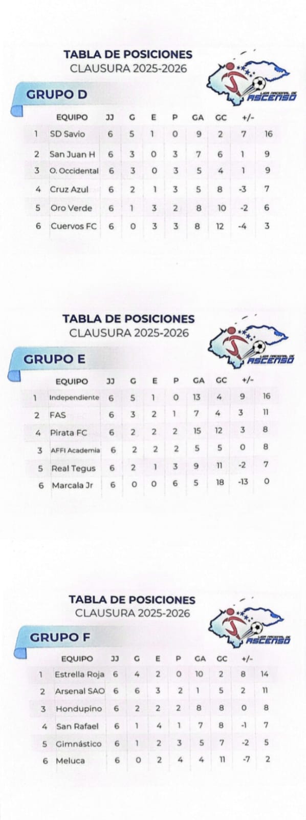 Santa Rosa, Honduras. (HSI) - Sin ninguna novedad en los grupos de la zona del Occidente y centro sur-oriente en las que los clubes solo tres clubes siguen en los primeros lugares.