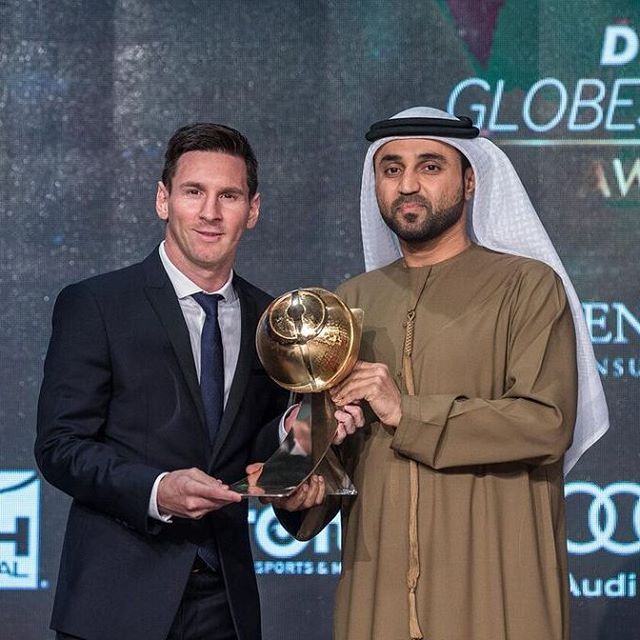 Lionel Messi al recibir el premio de mejor jugador del mundo.El listado de los premios que se entregaron durante la gala de los Globe Soccer Awards del 2015 es el siguiente: