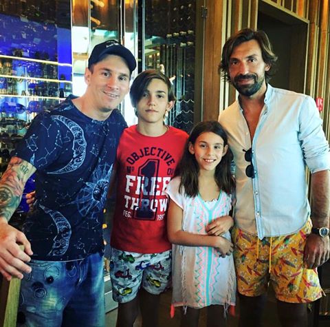 Antes de los premios, Messi posó con Pirlo y con la familia del italiano.