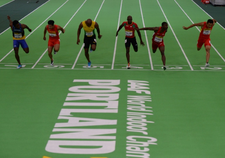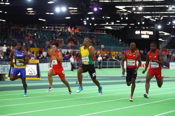 Final de fotografía en los 60 mts. Foto AFPPowell había llegado a esta final con cartel de favorito, ya que tenía el mejor tiempo de las series eliminatorias (6,44), pero de nuevo el detentor del récord mundial de los 100 metros se quedó con las ganas de un título grande.
