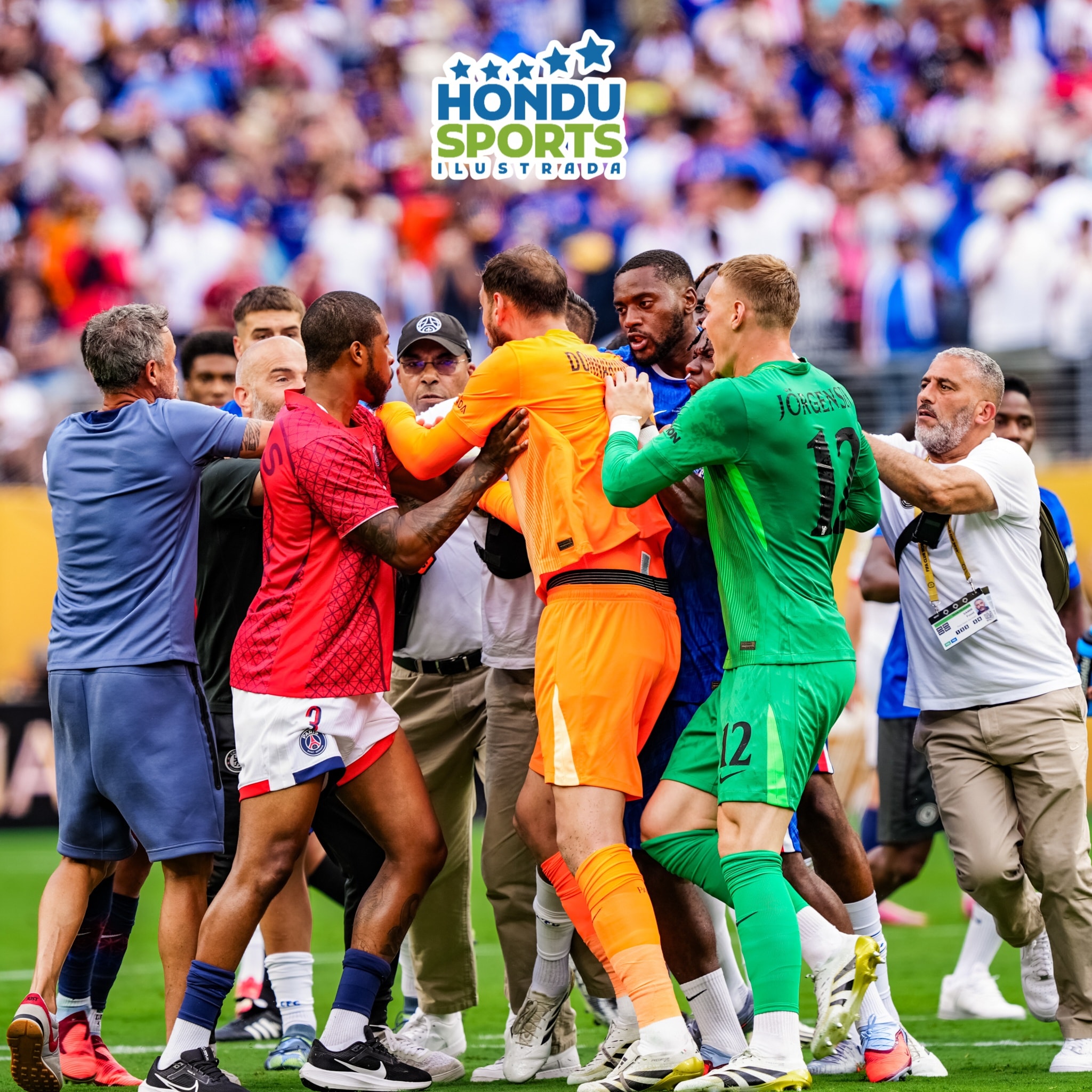 Tras unos tensos minutos finales, los equipos tuvieron que separarse cuando el entrenador del PSG, Luis Enrique, y Donnarumma empujaron a João Pedro cerca del círculo central.