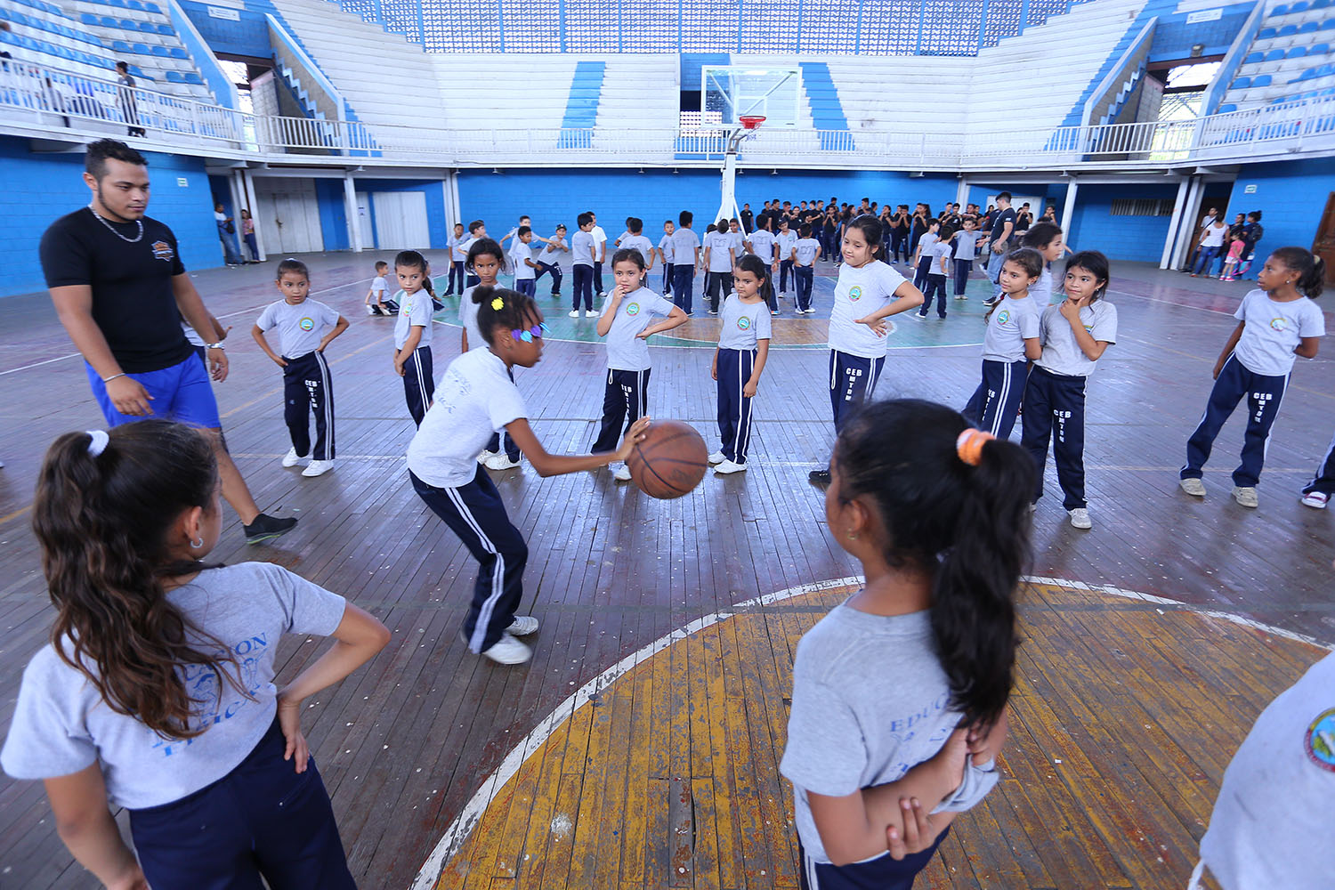 San Pedro Sula, Honduras. (HSI) - Con la participación de aproximadamente mil niños y niñas del Centro de Educación Básica "Mirtha Torres de Mejía", de la colonia Planeta, la administración municipal llevó a cabo este día el programa municipal “Deportes para Todos”, en las instalaciones del Complejo Olímpico Metropolitano de esta ciudad.La jornada deportiva inició a las 8.00 a.m. con la asistencia de un grupo de 500 estudiantes, mientras que por la tarde participó el segundo grupo de igual número escolares, quienes disfrutaron de las instalaciones deportivas practicando las disciplinas de fútbol, béisbol, boxeo, atletismo, halterófila o levantamiento de pesas, karate, baloncesto, zumba y vólibol.