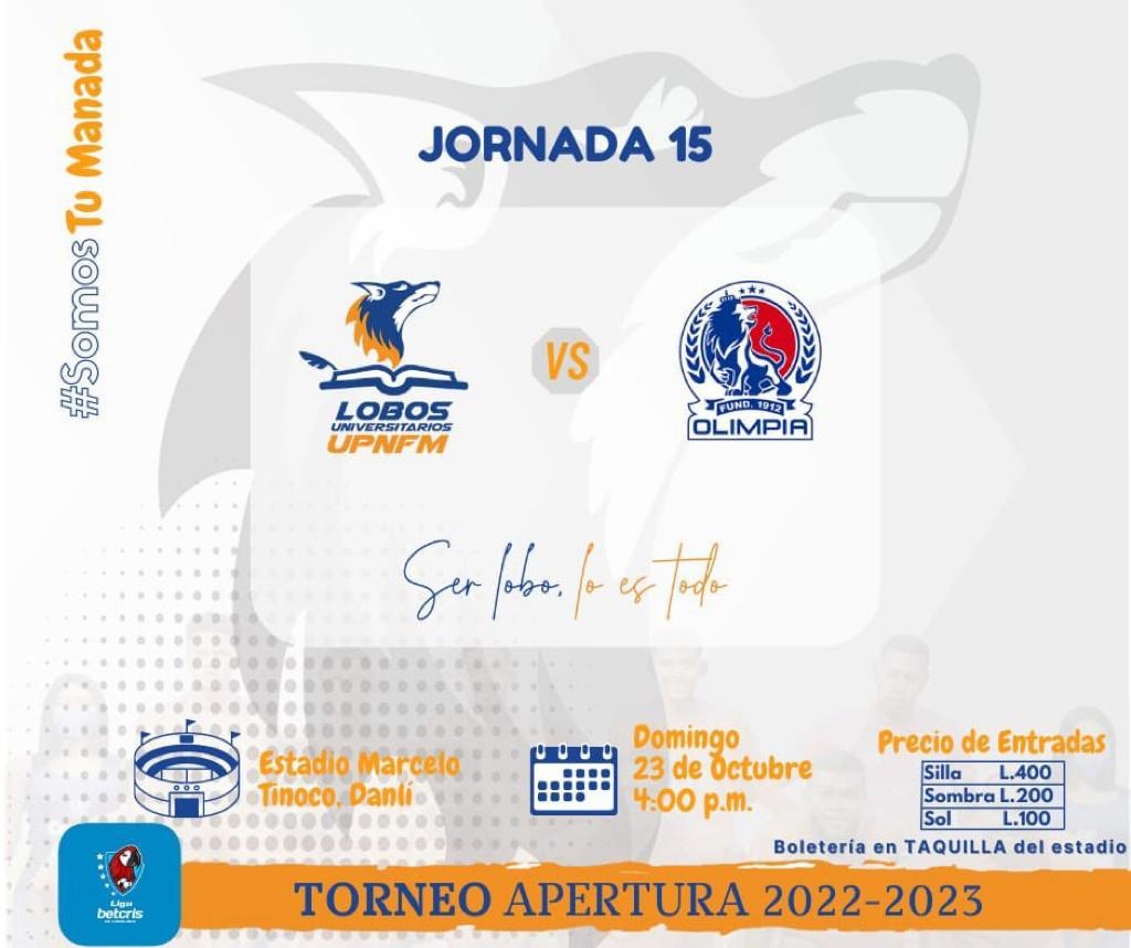 Después se disputa el duelo entre Lobos UPNFM vs Olimpia que se disputará en Danlí a las 4:00 PM.