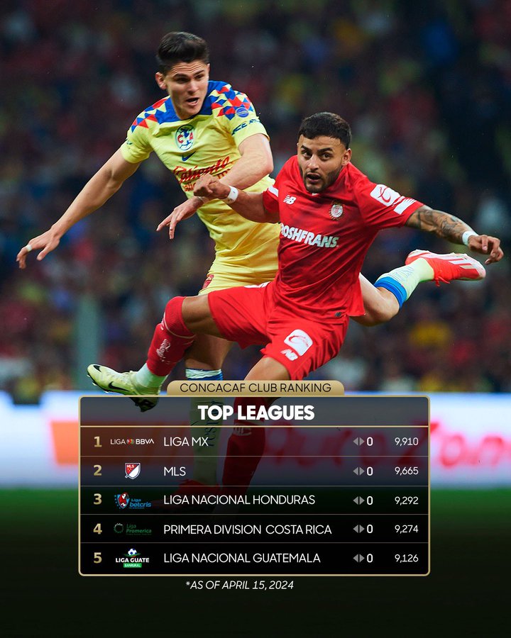 El top 10 de ligas de Concacaf es completado por la Canadian Premier League, Liga Panameña de Futbol, Primera División de El Salvador, Liga Nicaragüense de futbol y Jamaica Premier League.