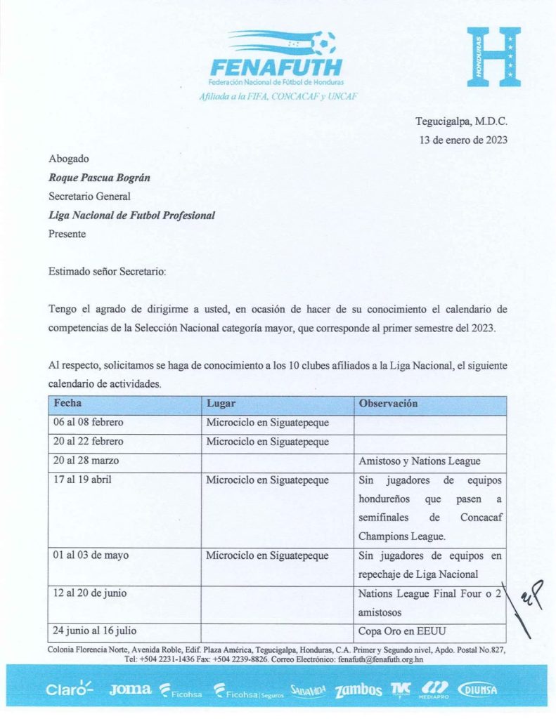 El mismo fue anunciado para que los clubes de la Liga Nacional de Honduras tomen en cuenta dicho calendario para sus partidos del campeonato nacional.
