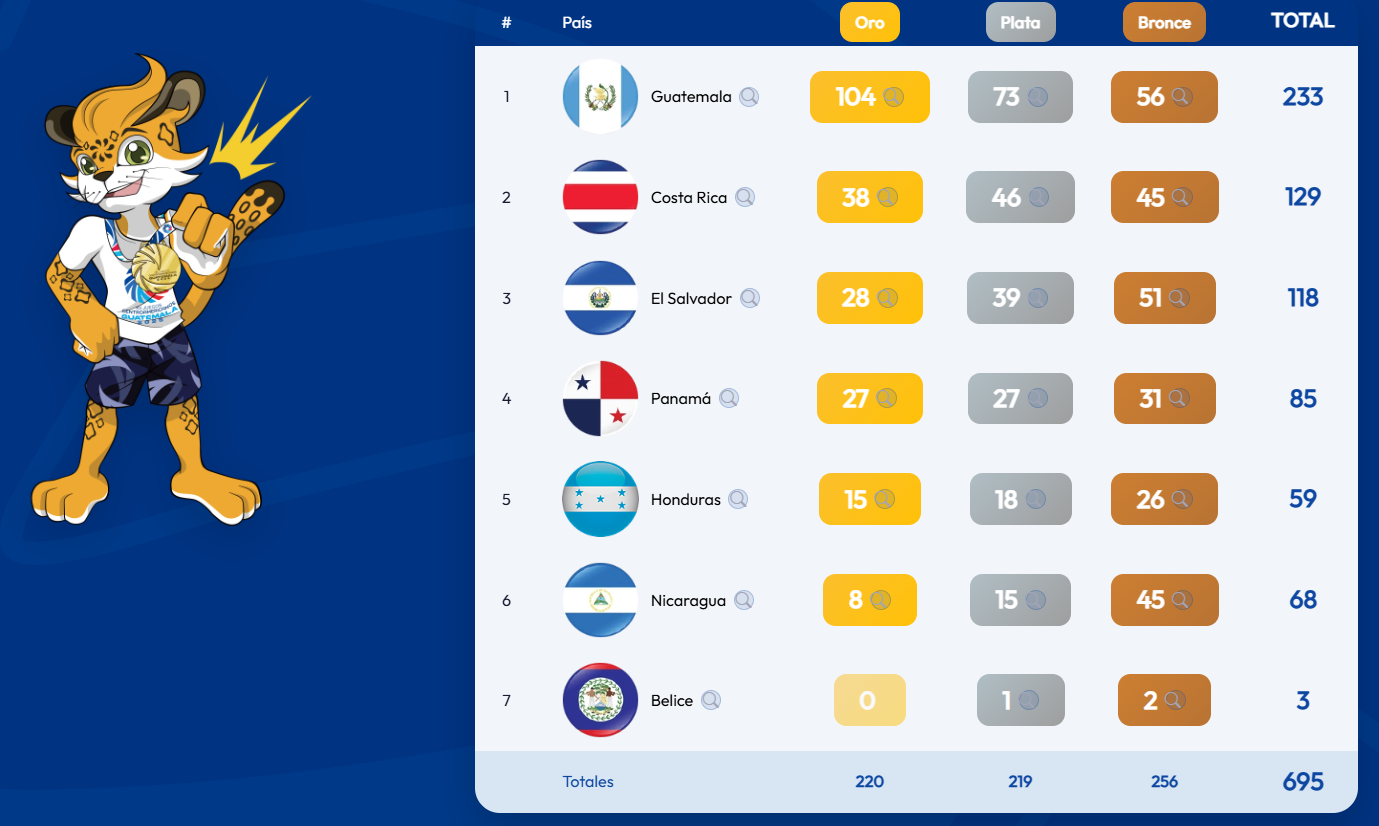 Nicaragua nuestro inmediato perseguidor en la tabla de medallas, nos sobrepasó en el total de medallas pero Honduras conserva su quinta plaza tras solo recortar en una de oro los nicaragüenses.