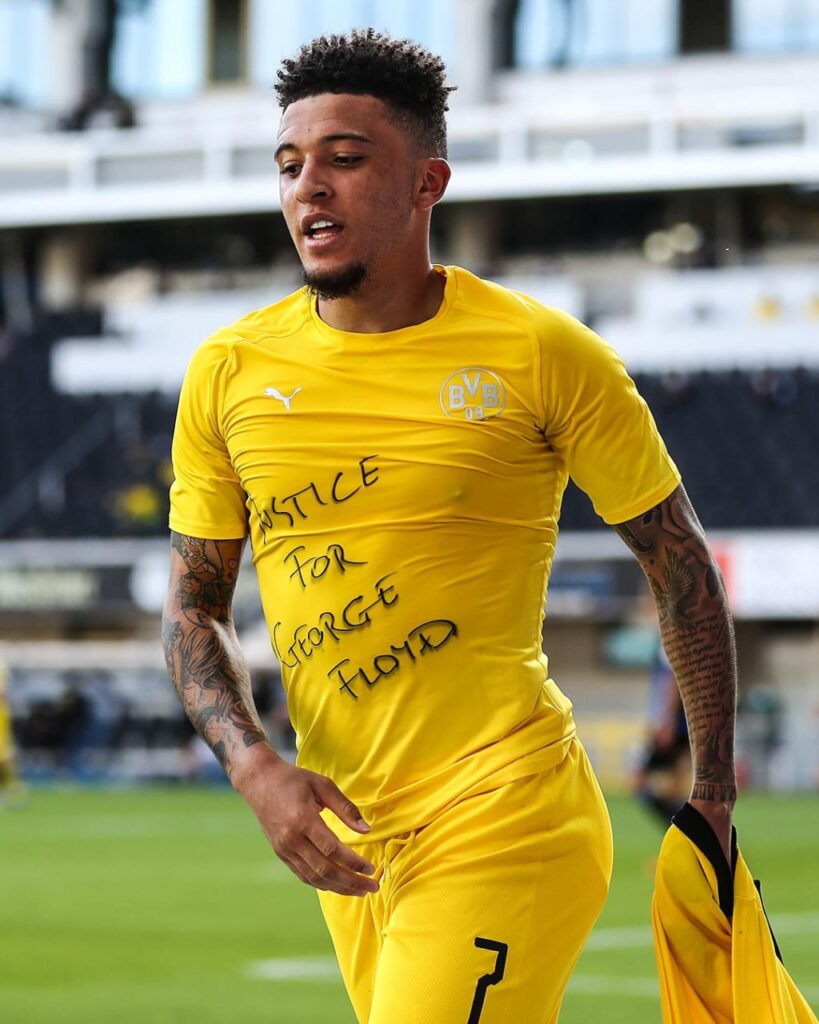 Sancho muestra su reclamo por justicia para George Floyd. Foto BVB