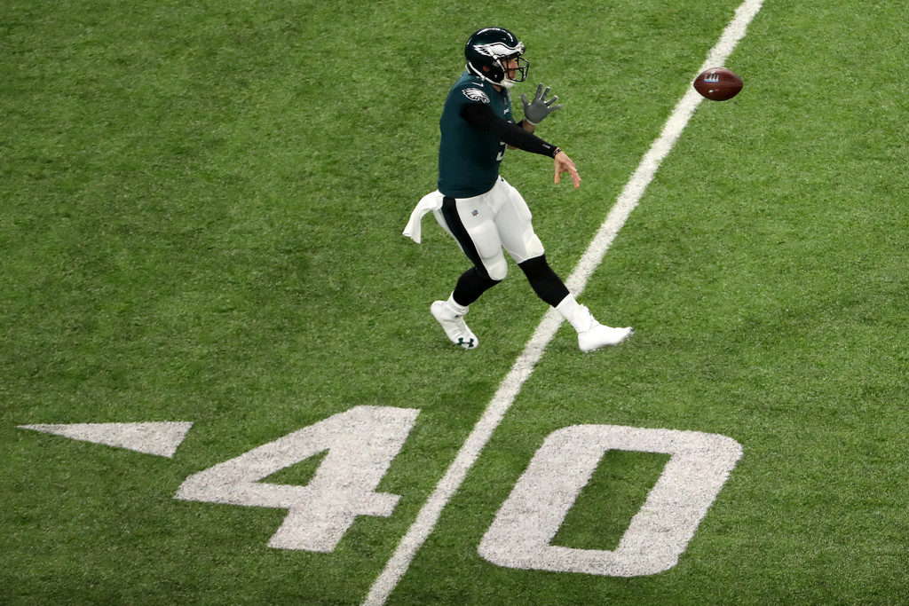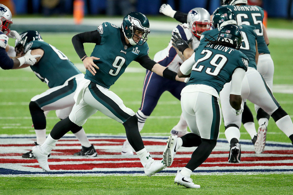 Nick Foles fue el héroe de los Eagles comandando el ataque de Filadelfia. Foto GettyTras el show de Justin Timberlake los de New England ingresaron encendidos. En su primer ataque convirtieron un touchdwon gracias a la recepción de Gronk Spike y tras la conversión dejaron 22-19 el resultado.