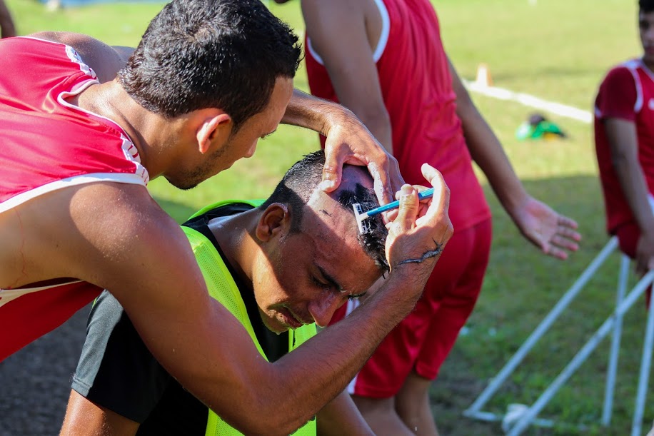 Al final del entrenamiento, Josué Cubas, alias "Pinolapa", pagó el precio de debutar con el primer equipo y le sacrificaron la "melena" Bautizo por el que pasan todos los jugadores que debutan en el Atlético Municipal.