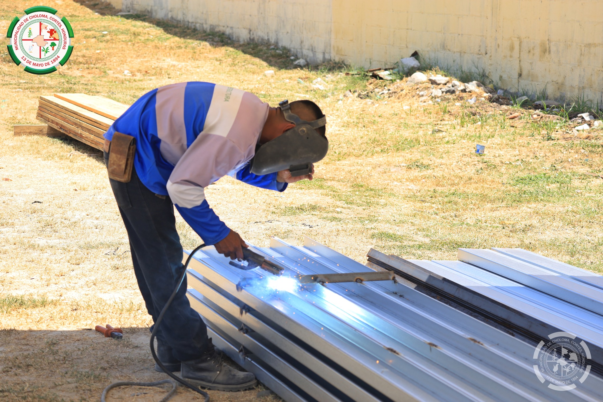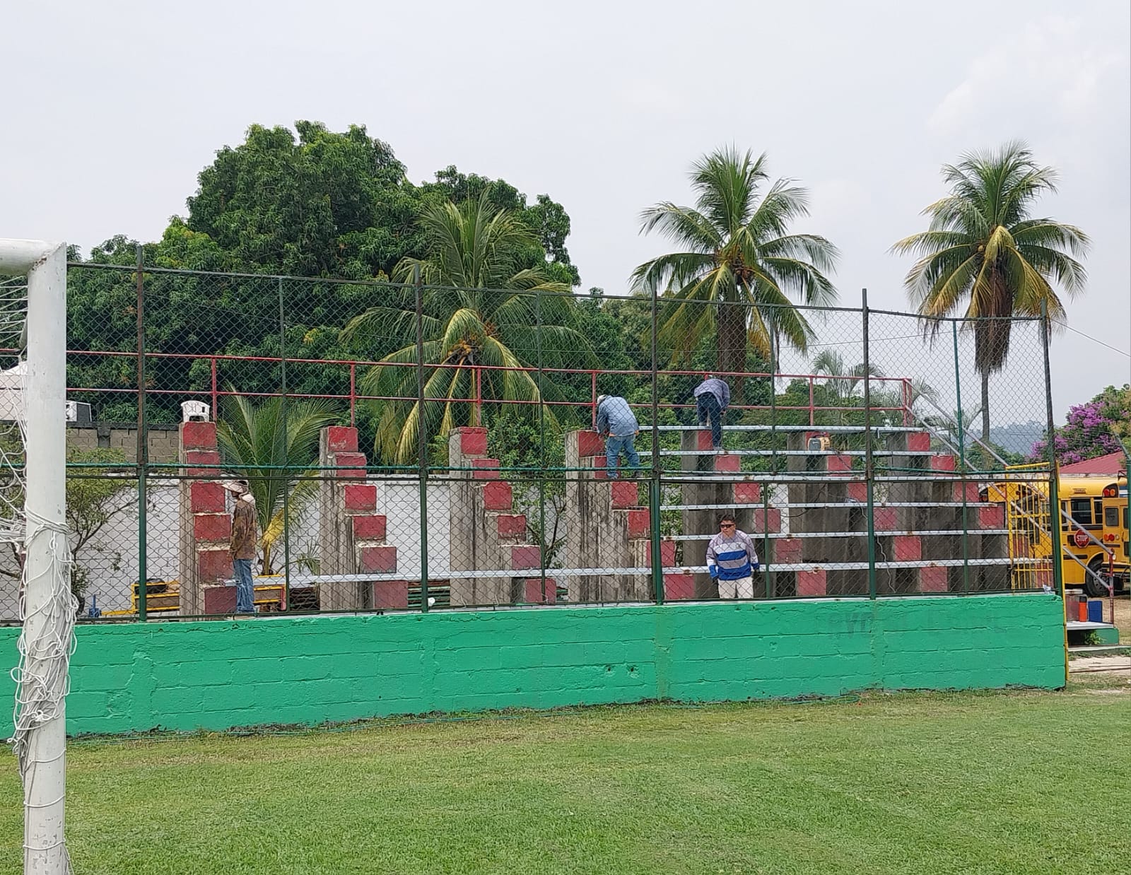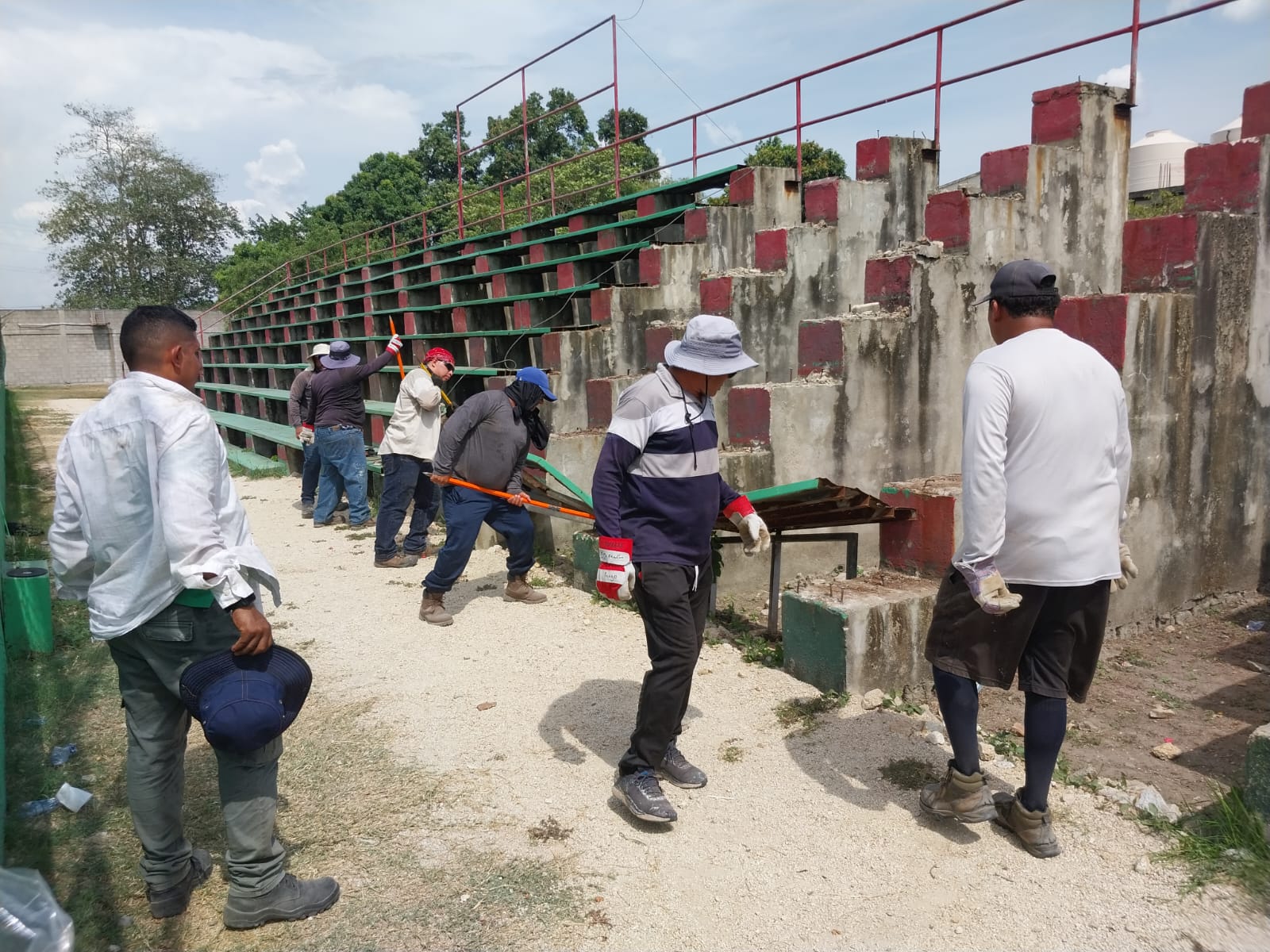 Choloma, Honduras. (HSI) - El alcalde municipal de Choloma, Lic. Gustavo Mejía, a través de CIDEMUCH y con el apoyo del departamento de compras realizó la entrega de materiales y supervisó personalmente los trabajos de reparación en las graderías del Estadio Rubén Deras.