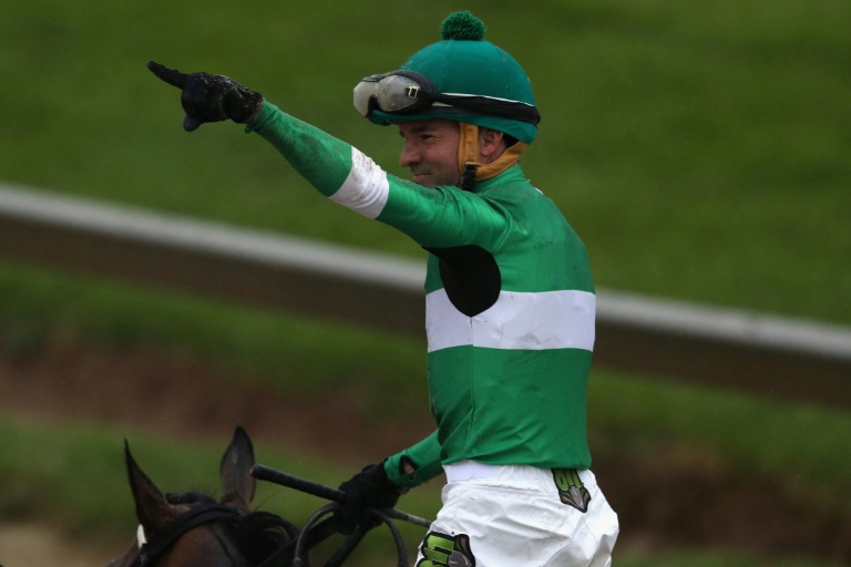 El jinete de Exaggerator, Kent Desormeaux, festeja luego de ganar el Preakness Stakes, segundo gran trofeo de la Triple Corona de la hípica estadounidense, en el hipódromo de Pimlico en Baltimore, Maryland (este), el 21 de mayo de 2016 / AFP / Patrick SmithExaggerator desbancó al favorito Nyquist al alzarse con la victoria en la edición 141 del premio Preakness, segundo gran trofeo de la Triple Corona de la hípica estadounidense disputado este sábado bajo un clima lluvioso en el circuito de Pimlico.