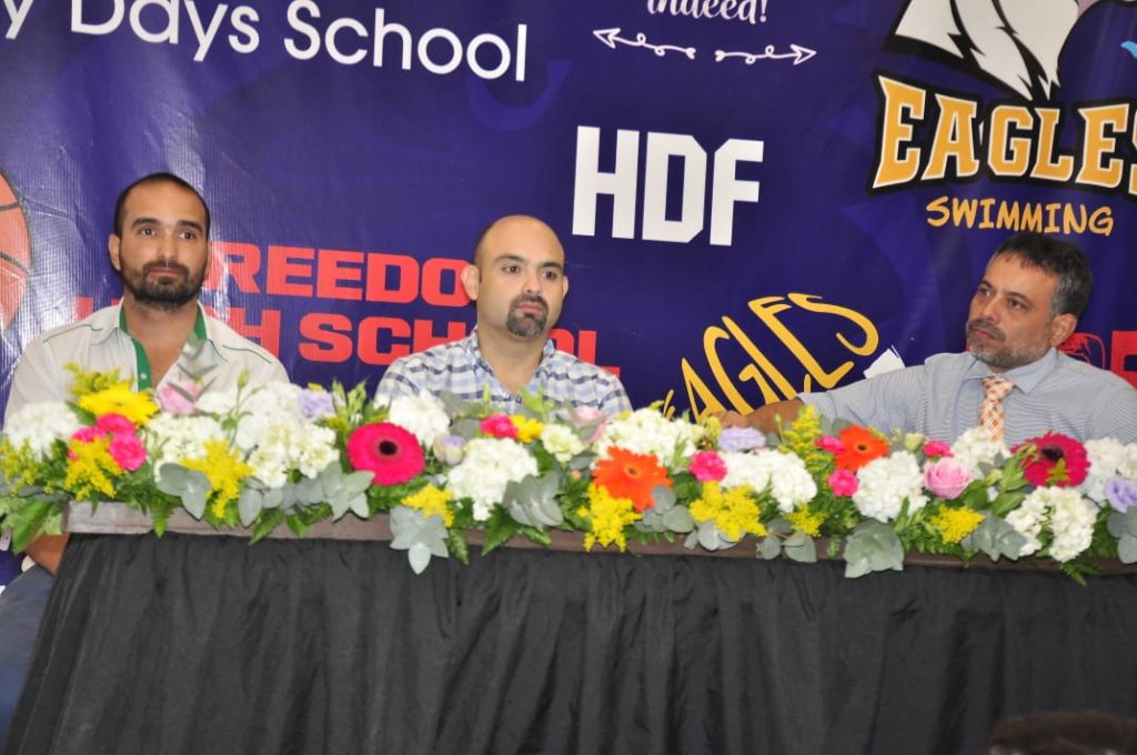 Happy Days & Freedom es una escuela que se ha caracterizado con los años de dar excelencia a sus estudiantes a nivel académico y ha pretendido siempre llevarlo a los deportes donde sus estudiantes practican las diferentes categorías del atletismo, voleibol, básquetbol, fútbol, natación así como otros deportes. Su director de deportes es el máster en gestión deportivo, Carlos Flores, quien hizo de anfitrión del evento.