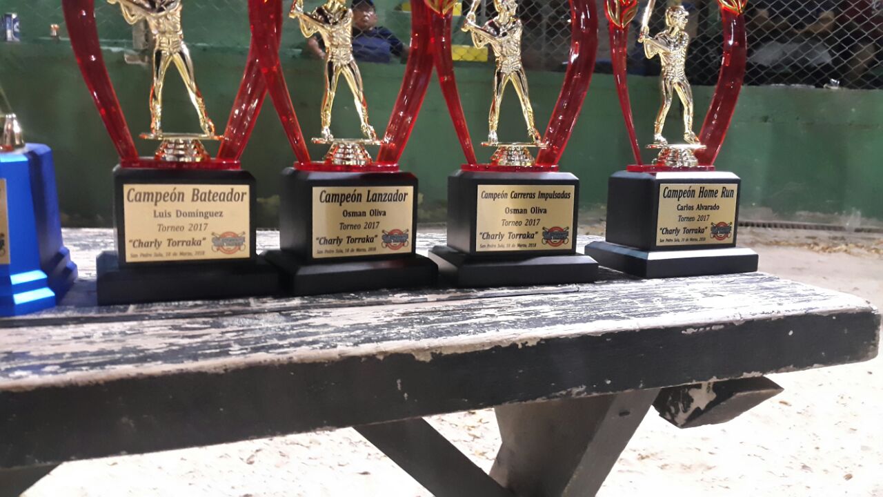 Los trofeos para los mejores.San Pedro Sula, Honduras. (HSI) - Este fin de semana se inauguró el Torneo de Apertura 2018 del Slowpitch sampedrano. El torneo se llama Mauricio "Güicho" Fúnez, en honor al gran exfutbolista del Real España y la Selección de Honduras y que aún se mantiene en activo jugando este deporte de la pelota chica. El Ixel Pineda se vistió de gala para dar por iniciado uno de los campeonatos de mayor calidad en este deporte y que ha dado muchos campeonatos nacionales a esta ciudad.