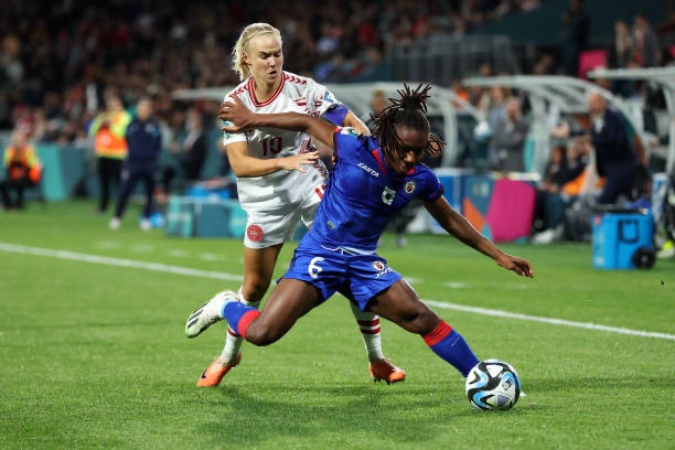 Acciones entre Dinamarca y Haití en la tercera jornada en el Mundial Femenino 2023. Foto cortesía