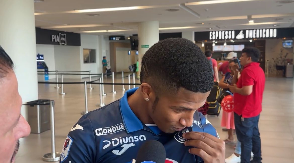 Jorge Serrano, nuevo fichaje de Motagua, besa el escudo en llegada al país