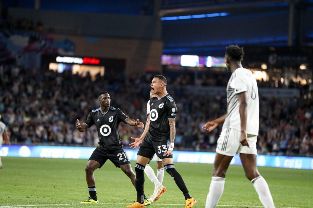 Arriaga celebra uno de sus goles con Minnesota United. Foto MNUFC