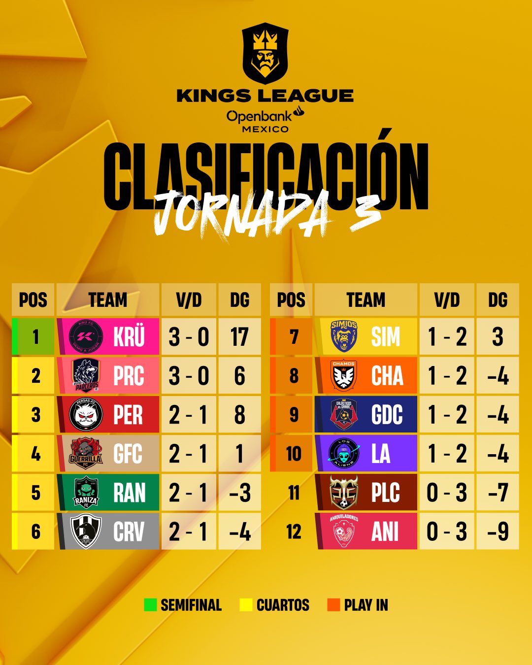 La jornada 3 de la Kings League México deja buenas sensaciones para algunos y empieza a confirmar un mal momento para otros.