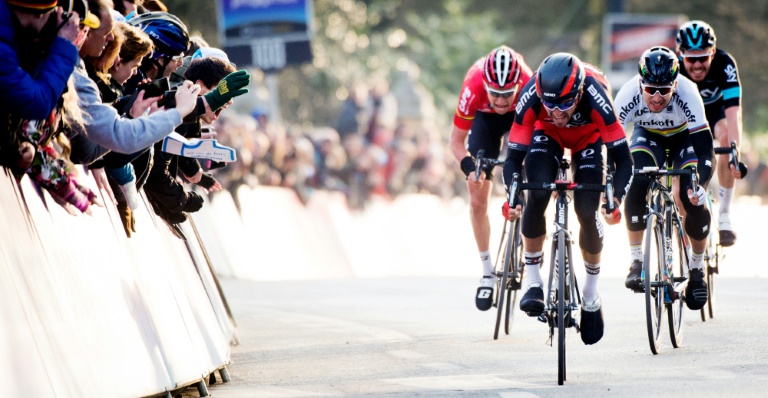 El campeón del mundo eslovaco Peter Sagan (2ºD), en el sprint final de la carrera belga "Omloop Het Nieuwsblad", el 27 de febrero de 2016 en Ghent / AFP / BENOIT DOPPAGNELa carrera más larga y la de pronóstico más incierto de la temporada, la Milán-San Remo, abre el sábado la temporada de clásicas ciclistas con un nombre propio, el campeón del mundo eslovaco Peter Sagan, el hombre clave en la primavera europea.