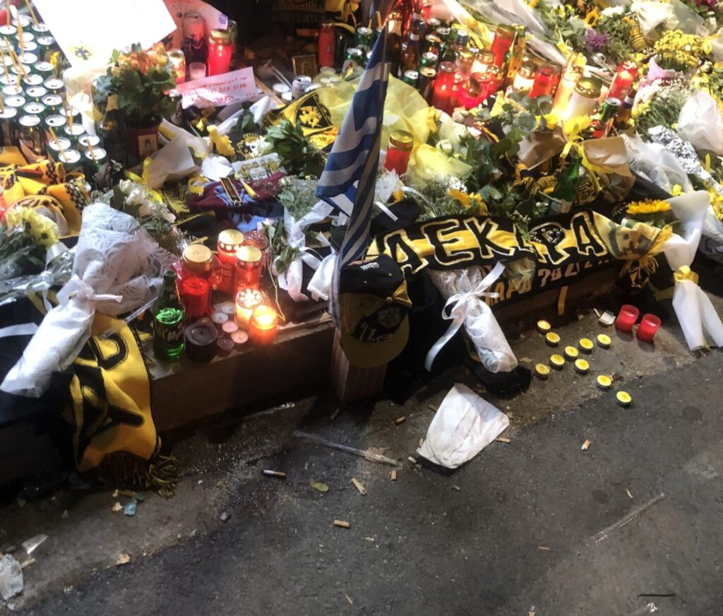Tributo para Michael, el aficionado que perdió la vida en disturbios en Atenas. Foto cortesía