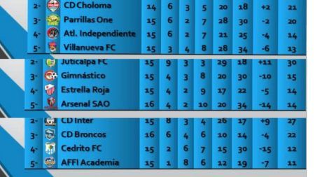Los dos clubes que tienen asegurado jugar partidos de repechaje es el FC Nacional de El Pino, Atlántida, y Arsenal SAO de Cantarranas, quienes matemáticamente no tiene oportunidades para escalar posiciones.