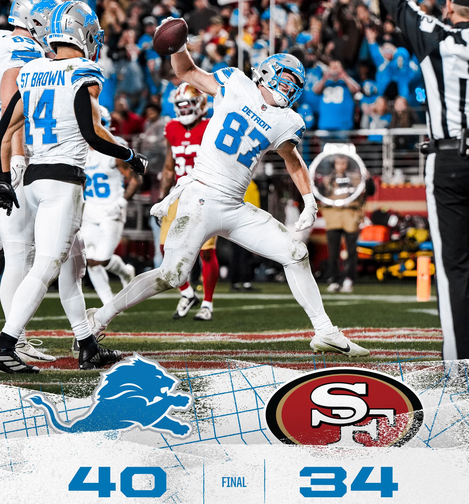 Eso resultó ser suficiente para que los Lions (14-2) extendieran su récord de franquicia de victorias en una temporada al vencer a los 49ers (6-10) como visitantes por primera vez desde 1975.