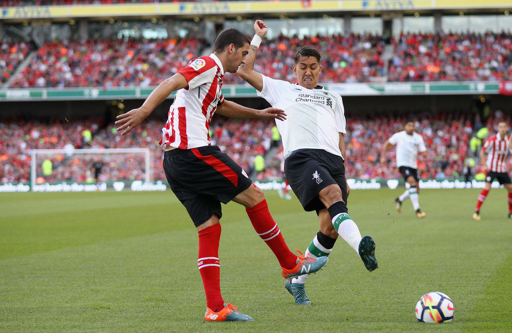 El peso de las dos plantillas en liza era enorme. De arranque, los secundarios de uno y los casi titulares de otro no son comparables. En nueve minutos, Firmino ya había encargado dos ocasiones claras de gol. El Liverpool tiene mucho más físico, va al choque sin miedo y te hace tres contra uno a los exteriores muy sincronizados. En una incursión en el área, Lekue hizo un penalti tan tonto como innecesario y claro. Lo lanzó el brasileño y casi se la para Arrizabalafga junto al palo derecho.