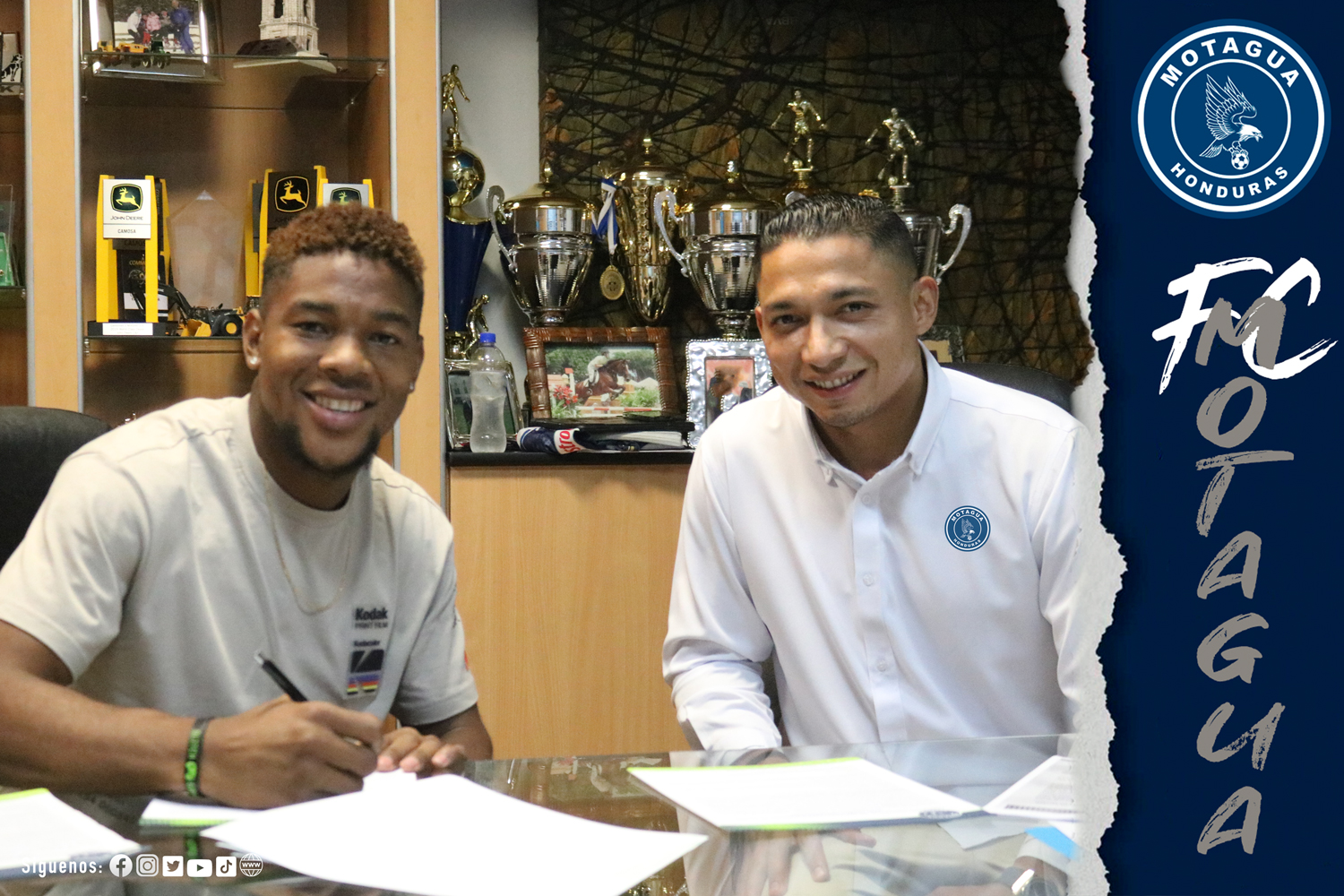 Yeison Mejía en la firma de su contrato junto a Emilio Izaguirre. Foto Motagua