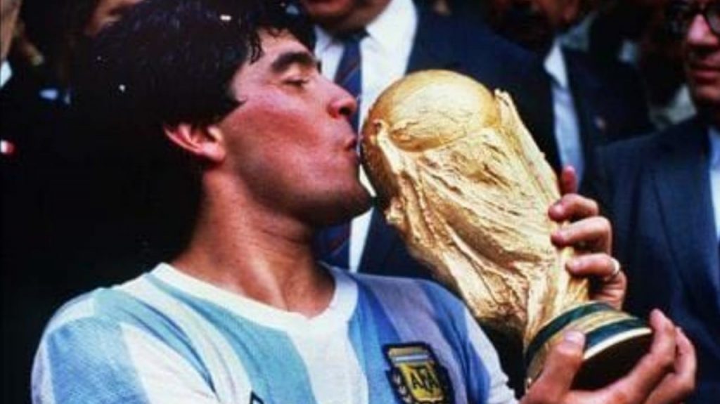 Diego Maradona con la Copa Mundial de 1986.