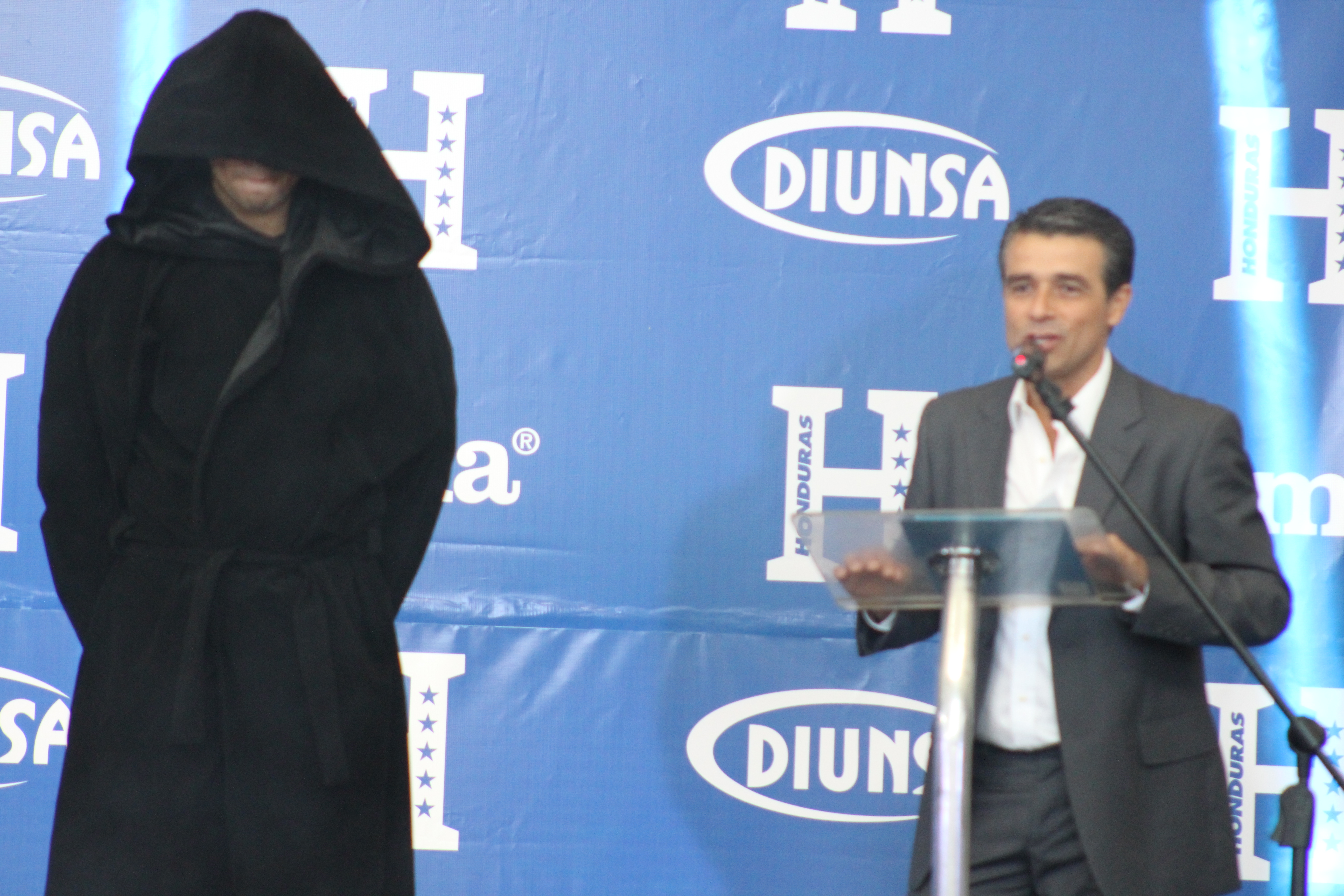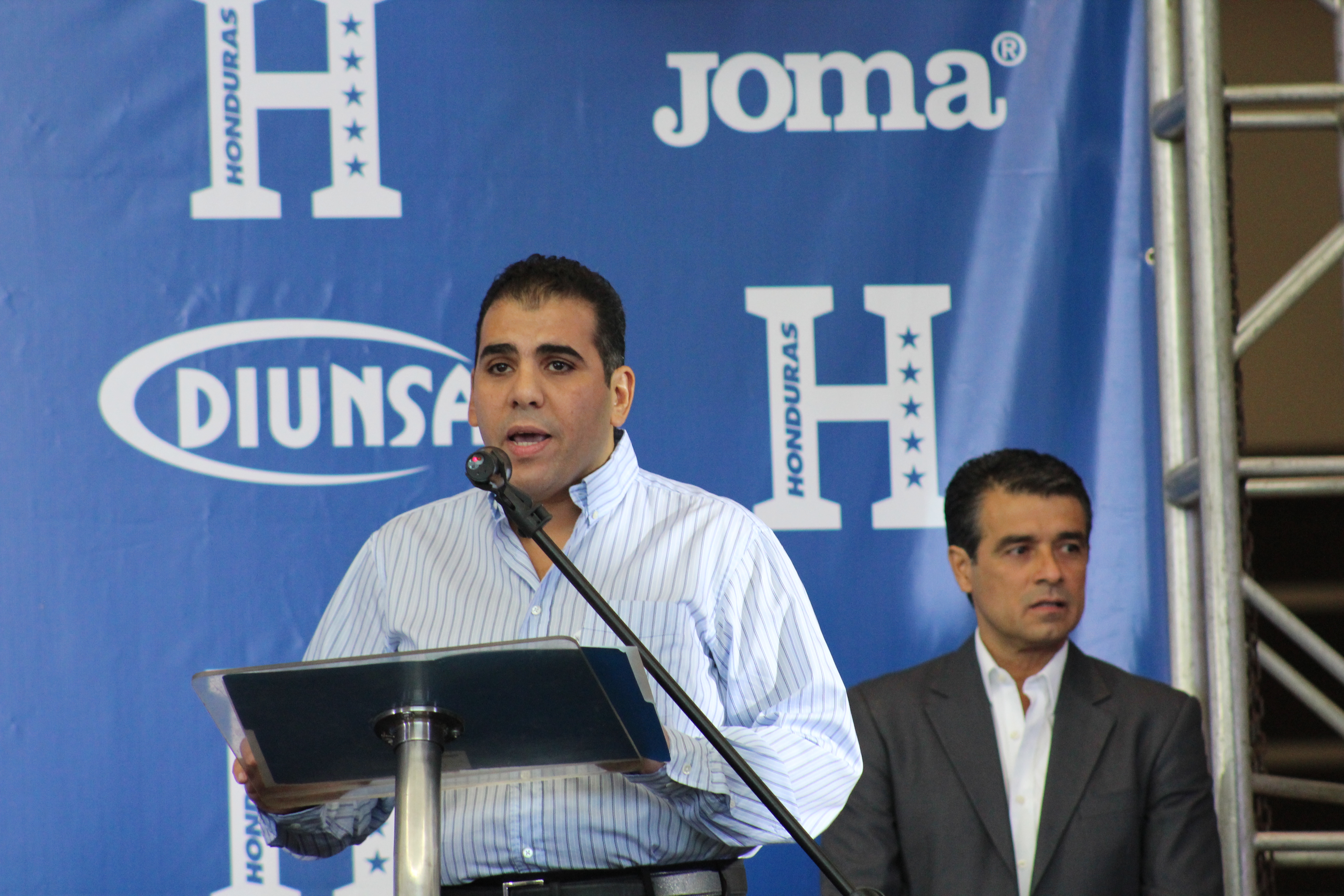 Pineda Chacón al momento de anunciar y develar el nuevo uniforme de la H. Foto HSI/R. Germer