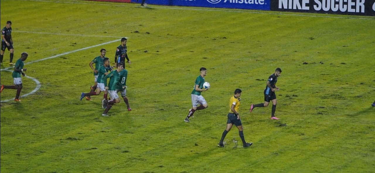 Los "Panzas Verdes" empataron 1-1 como locales en San Pedro Sula en un estadio afectado por las fuertes lluvias.