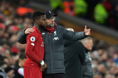 Jürgen Klopp, da instrucciones al delantero belga Divock Origi durante el partido de la Premier League. Foto AFP