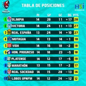 Clasificación: Real España le respira en la nuca al Olimpia y Victoria