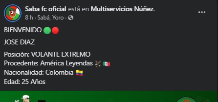 Las redes sociales del Sabá FC le dieron la bienvenida al jugador cafetero: BIENVENIDO JOSE DIAZ