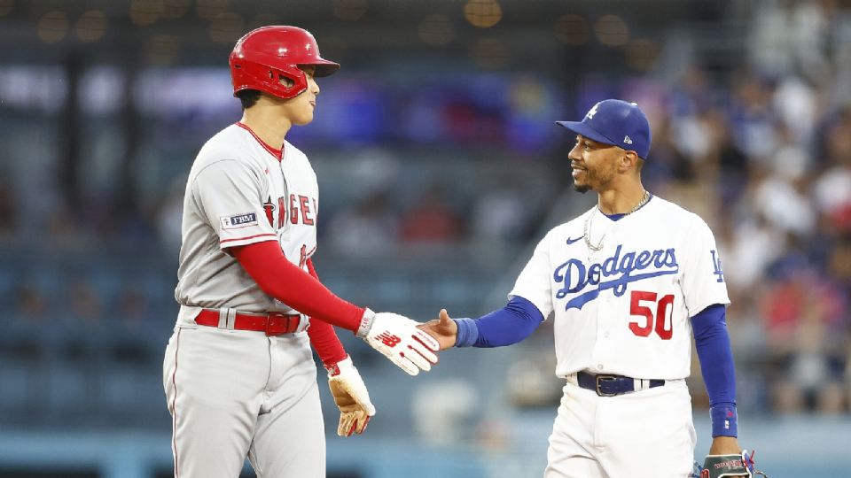 Shohei Ohtani saludando a Mookie Betts. Foto MLB
