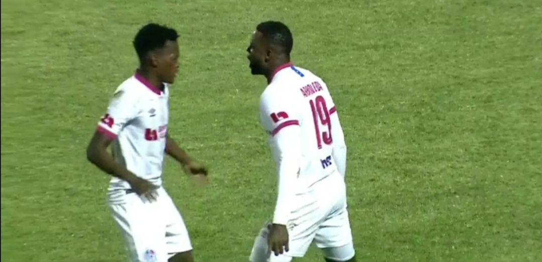 Olimpia da un fuerte golpe de autoridad y con uno menos le gana al Vida, aquí Arboleda festeja con Félix Crisanto. Captura Tigo Sports.